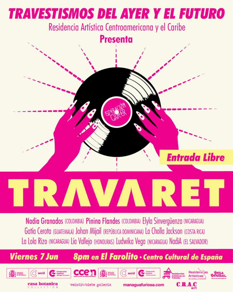 Este TRAVARET consistió en la presentación de una serie de performances que fueron producidas por los participantes de “Travestismo del pasado y del futuro: residencia de arte Centroamérica y el Caribe”. Las actuaciones cubrieron una variedad de temas, como la racialización afro-caribeña, la influencia de grupos extremistas religiosos en Costa Rica y Centroamérica, el control masculino sobre los cuerpos feminizados, la violencia vivida desde la familia, el esnobismo intelectual y de clase, la herencia de la historia trans. el activismo y los grandes horrores políticos que gobiernan la realidad de nuestra región.